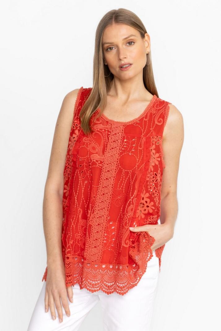 بلوزة جوني واز | بلوزة نسائية TSION باللون الأحمر الناري