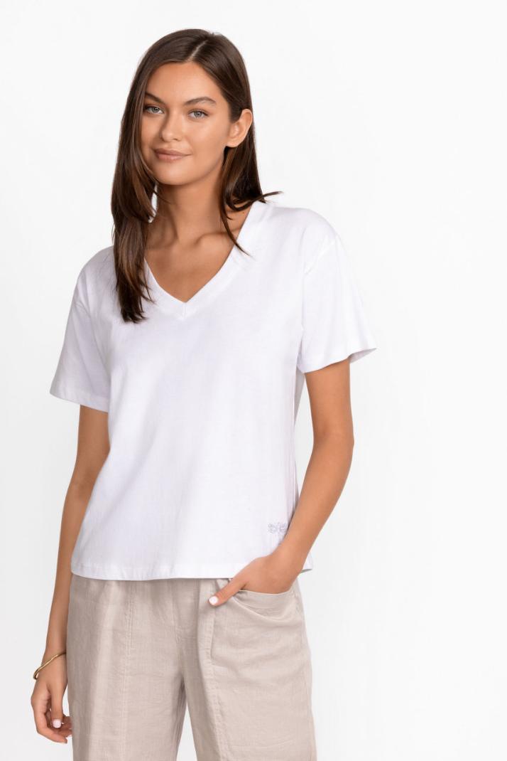 Johnny Was Tops | Dámské tričko s dlouhým rukávem z organické bavlny, zářivě bílé