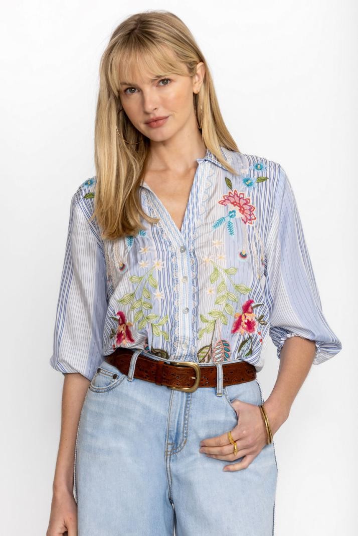 Johnny Was Topy | Dámské volné tričko Emika s volánem, astrové pruhy