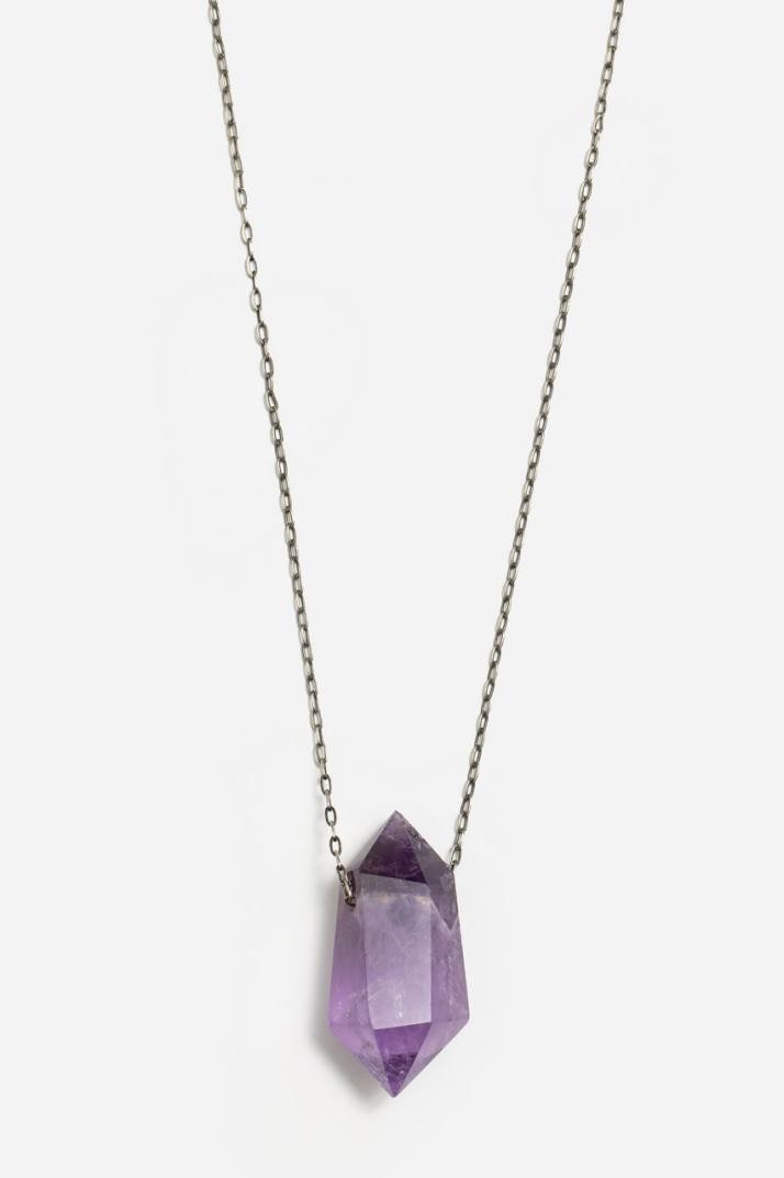 Denne håndplukkede ametystkrystal er en kraftfuld helbredende sten, der hviler på en kæde af 22 sterlingsølv. Ametyst er blevet hyldet gennem århundreder for sin smukke lavendelfarve og evne til at fremkalde bærerens reneste aspirationer. Den menes at styrke intuitionen, samtidig med at den beroliger sind og ånd. Vi elsker ametyst som en sten at bære eller holde under morgenmeditation eller stille, jordnære øjeblikke i din dag. Bemærk: Hver sten er unik, så der kan være små variationer i hvert stykke.