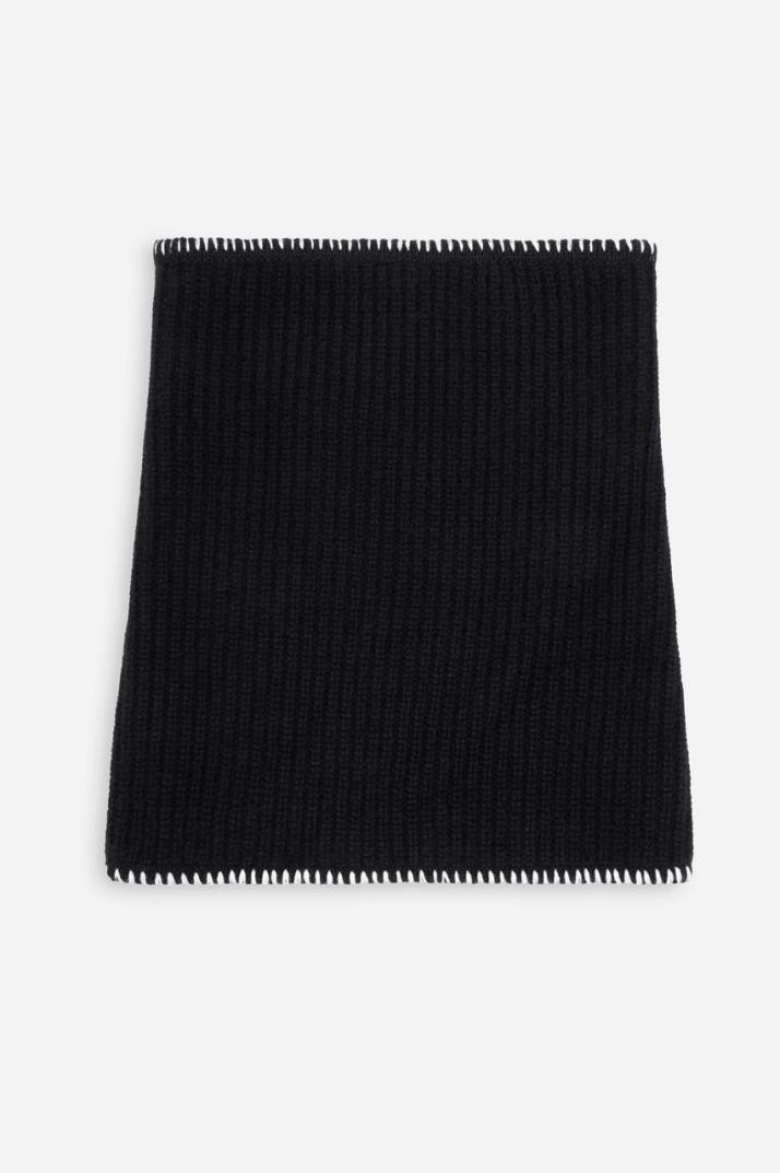 Udnyt denne sæsons hybridtrend med hat og hætte med den stilfulde Whipstitch Snood. Denne funktionelle koldvejrs-tilbehør er fremstillet i sort og af luksuriøst kashmir, og er præget af kontrasterende hvide whipstitch-søm langs begge kanter. Brug denne snood med alt fra skræddersyet overtøj til simpelt sportstøj.