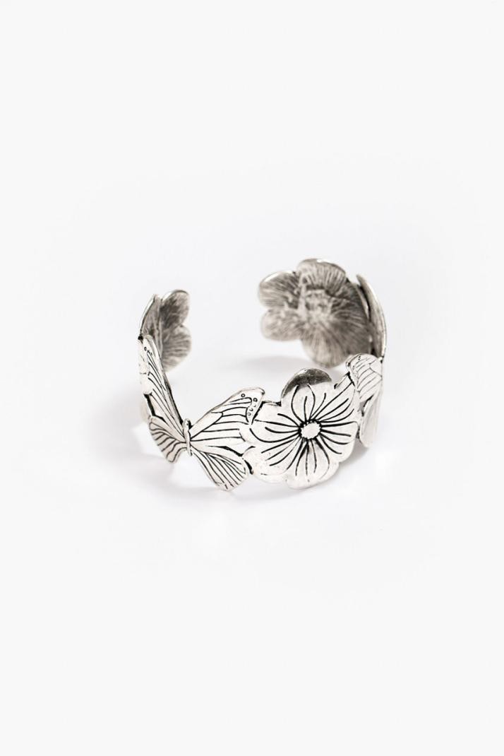 Con una delicada combinación de flora y fauna, el brazalete Mariposa Garden captura a la perfección la singular belleza de la naturaleza. Elaborado en latón 100% y chapado en plata brillante, este impresionante brazalete se puede añadir a atuendos casuales o formales. Combínalo con un conjunto de mezclilla y botines de cuero para un look relajado de fin de semana.