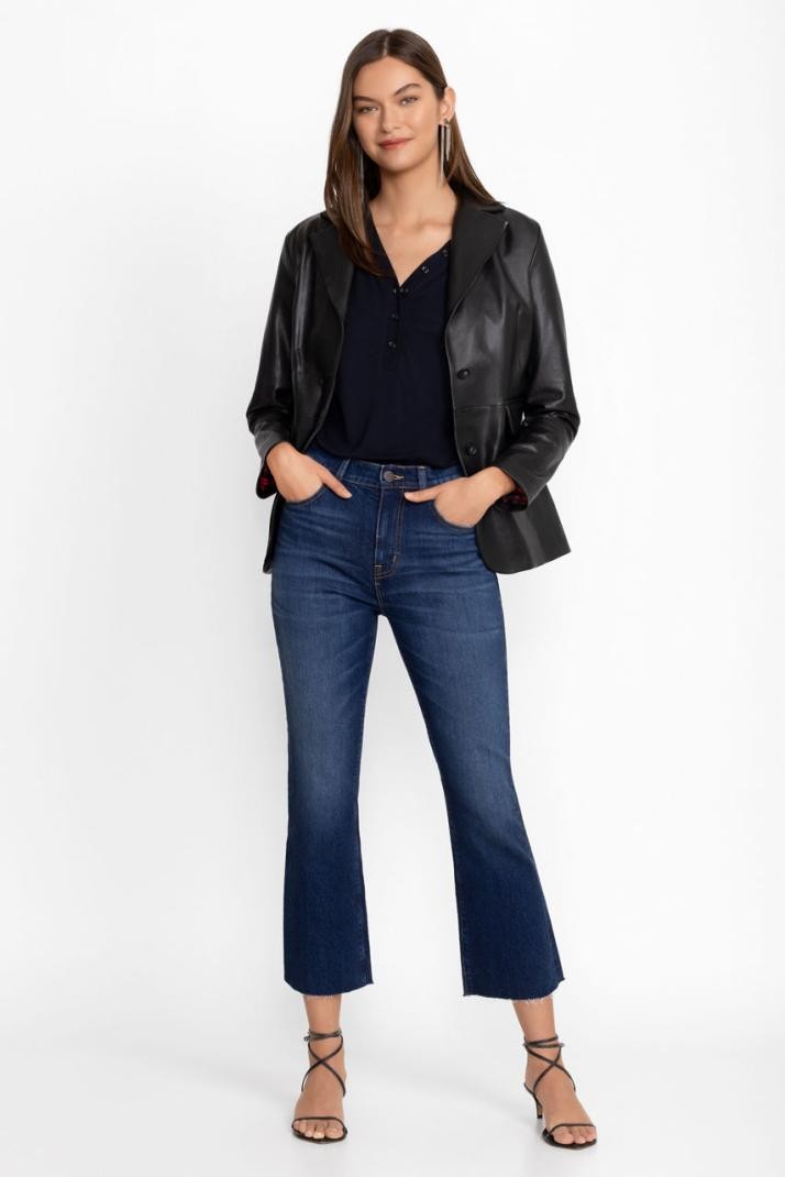 Luomupuuvillasekoitteesta ja ripauksella joustavuutta valmistetut Marseille Baby Boot -farkut tarjoavat retrohenkisen, lyhyen bootcut-leikkauksen, jossa on keskikorkea vyötärö, joka on istuva polven läpi. Nämä ainutlaatuiset farkut levenevät hieman helmasta luoden näyttävän siluetin. Yhdistä istuvan puseron ja nilkkureiden kanssa tyttöjen iltaa varten.