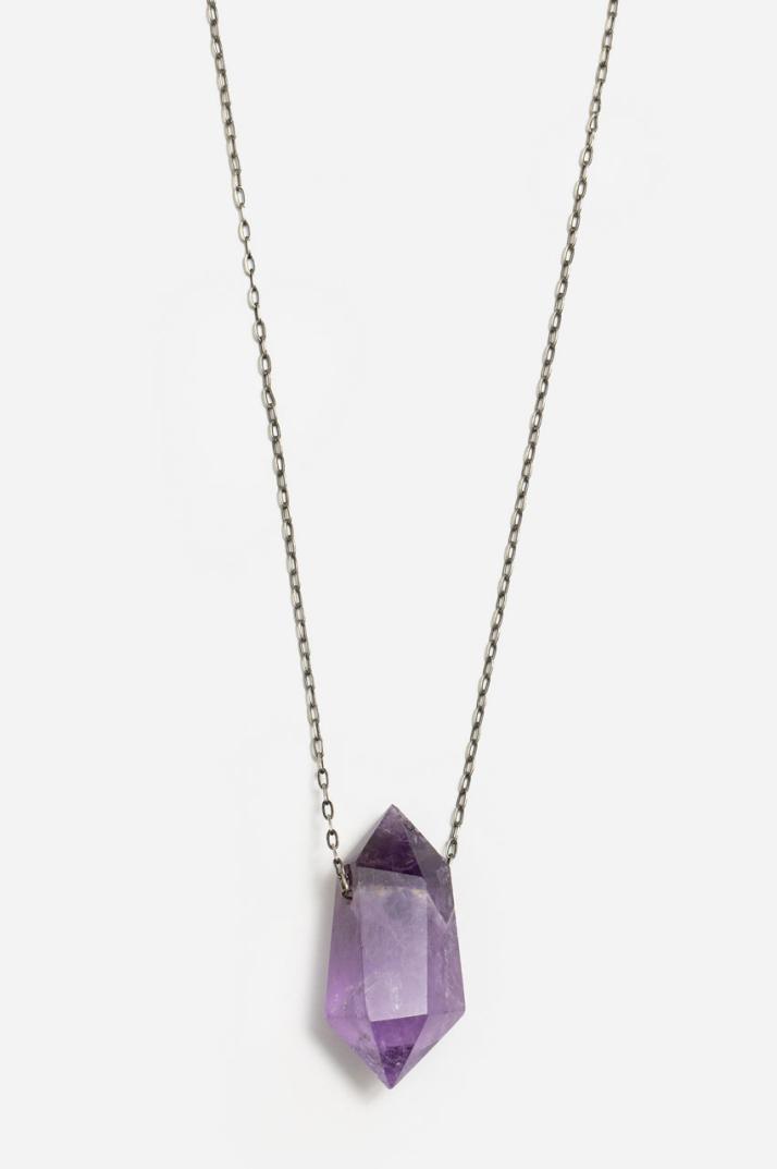 Voimakas parantava kivi, tämä käsin valittu ametistikristalli lepää 22 sterlinghopeaketjussa. Ametistia on ylistetty vuosisatojen ajan sen kauniin laventelin sävyn ja kyvyn vuoksi herättää kantajansa puhtaimmat pyrkimykset. Sen uskotaan parantavan intuitiota ja samalla rauhoittavan mieltä ja sielua. Rakastamme ametistia kivenä, jota voi käyttää aamumeditaation aikana tai pitää kädessään hiljaisina, maadoittavina hetkinä päivällä. Huomaa: jokainen kivi on ainutlaatuinen, joten kappaleissa voi olla pieniä eroja.