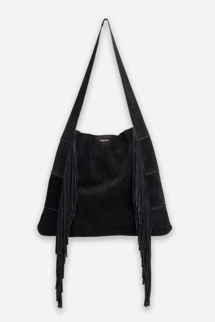 Nudeći moderan pristup klasičnoj hobo torbi, Nero Italian Suede Fringe Hobo torbica dodaje jedinstveni štih vašem izgledu. Izrađena od 100% brušene kože, ova torba ima jedan široki remen za rame i razigrane rese za dovršen izgled koji je živahan u stalnom kretanju. Uparite je s traper izgledom i trendi gležnjačama za svjež stil.