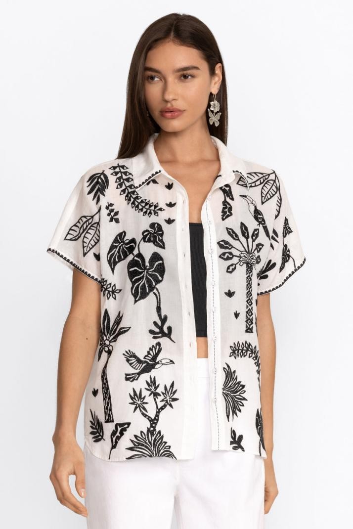 A bonyolult és merész hímzéssel díszített Luciana Dolman ing modern csavart ad a klasszikus ingszabásnak. 100%-ban légáteresztő pamutból készült, laza szabású, gombos ing, enyhén ívelt szegéllyel. Párosítsd a Luciana öves rövidnadrággal és divatos sportcipővel egy friss hétvégi összeállításért.