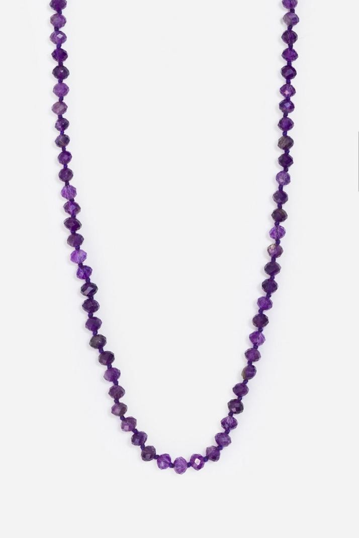 Tá an muince iontach seo déanta as criostal aimitis roghnaithe de láimh, cloch chumhachtach cneasaithe a chreidtear a athraíonn fuinneamh diúltach ina ghrá agus a thugann mothú suaimhnis don té a chaitheann í. Cloch atá an-chneasaithe agus spioradálta, tá sí á ceiliúradh ar feadh na staire as a cumas sinn a nascadh lenár n-eagna agus lenár n-eolas uathúil féin. Tabhair faoi deara: Tá gach cloch uathúil, mar sin d'fhéadfadh go mbeadh éagsúlachtaí beaga i ngach píosa.