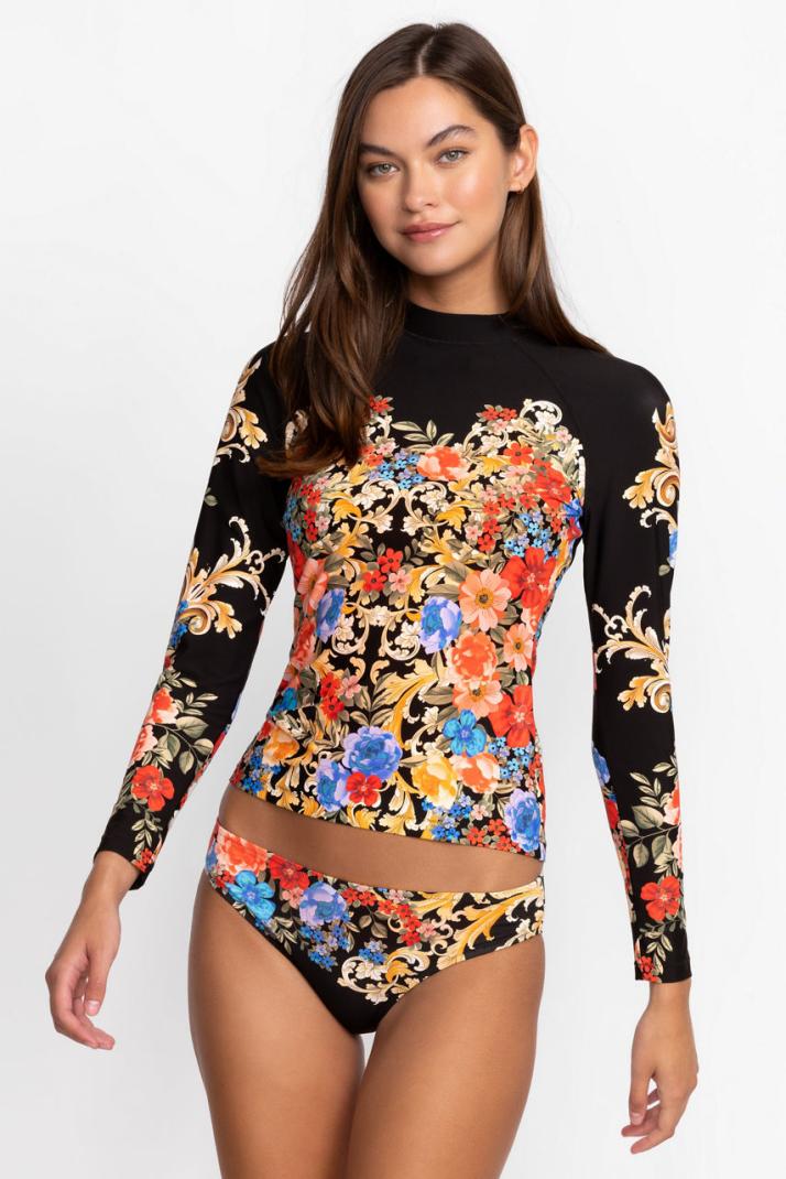 Our Black Royal Cut Out Back Surf Shirt is the perfect piece for any sporty swim ensemble — whether you’re lounging on the beach or out catching waves. The on-trend floral print and colorway pairs well with your favorite bottoms — from the matching hipsters to sleek and neutral bikini bottoms.