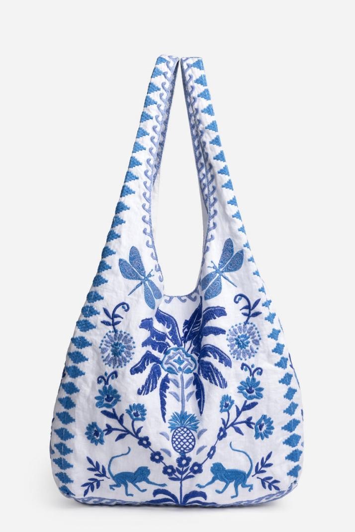毎日の使用を想定して丁寧に作られた「Slouchy Tote Bag」は、収納力とファッション性を兼ね備えています。持ち運びに便利なダブルストラップと、美しく繊細な刺繍が施された、目を引くバッグは、必需品を持ち運ぶのに最適です。デニムオンデニムのアンサンブルやカラフルなアクセサリーと合わせれば、洗練された週末ルックが完成します。