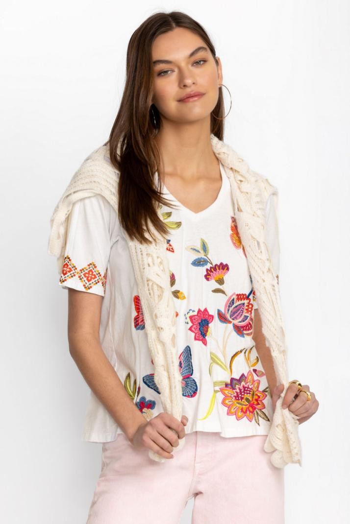 Johnny Was Toppar | Dam GRACEY TRAPUNTO V-RINGAD T-SHIRT Vit