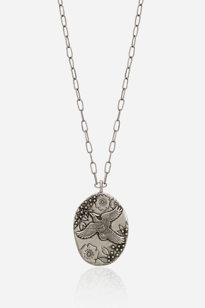 Presenting a silvery pendant on a delicate link chain, the Dreamer Pendant Necklace adds whimsy to your jewelry collection. Featuring carefully engraved images, this necklace adds whimsy and wonder to an everyday look. Wear alone or layered with multiple necklaces for an eclectic look.